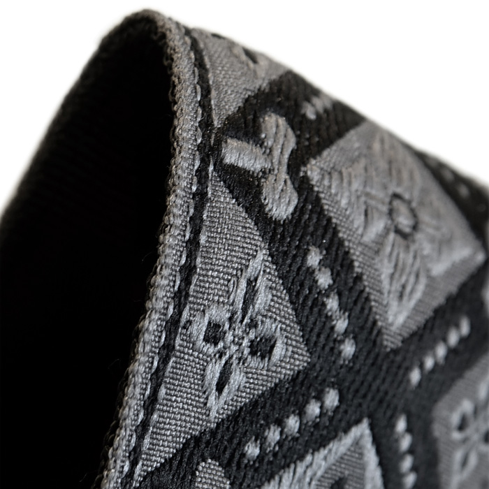 Synthetische Materialien. Hochwertiges Jacquard Webeband auf weichem Nylon Gurtband. Synthetische Endstücke, höhst reißfest und widerstandsfähig.