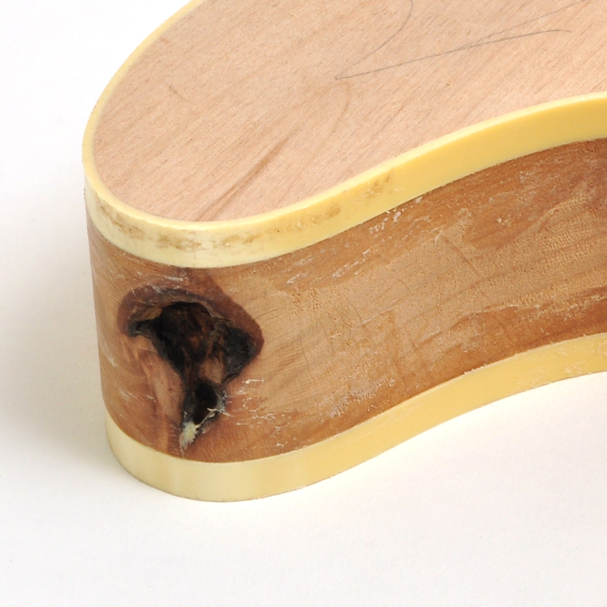There is still some work to do with this one: no cable channels, no jack channel. Sanding work required. Project bodies have also some visual issues (small dents or wood issues etc.). Heavy wood issue at cutaway.