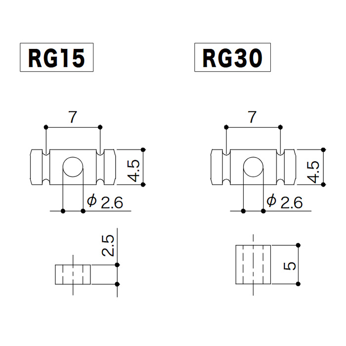 Nickel. Set of 2 (height: 2,5mm / 5mm). Mounting screws included.